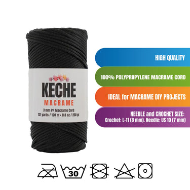 Keche Macrame Cord | Macrame Supplies 3mm Polyester Macrame Rope - Black