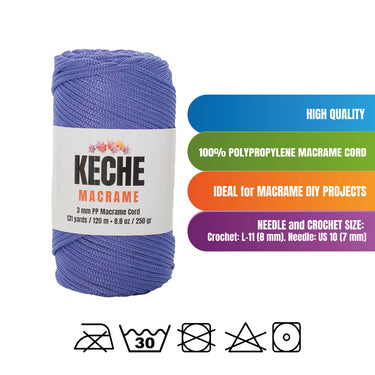 Keche Macrame Rope is made from 100% high-quality polypropylene, ensuring a thick, soft, and durable texture. Each skein weighs 8.8 oz (250g) (±10%) and measures 317 ft / 131 yards (120 meters) (±10%) with a 3mm thickness, making it perfect for a variety of crafting projects.