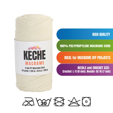 Keche Macrame Cord | Macrame Supplies 3mm Polyester Macrame Rope - Cream