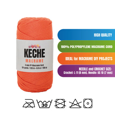Keche Macrame Cord | Macrame Supplies 3mm Polyester Macrame Rope - Orange
