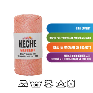 Keche Macrame Rope is made from 100% high-quality polypropylene, ensuring a thick, soft, and durable texture. Each skein weighs 8.8 oz (250g) (±10%) and measures 317 ft / 131 yards (120 meters) (±10%) with a 3mm thickness, making it perfect for a variety of crafting projects.