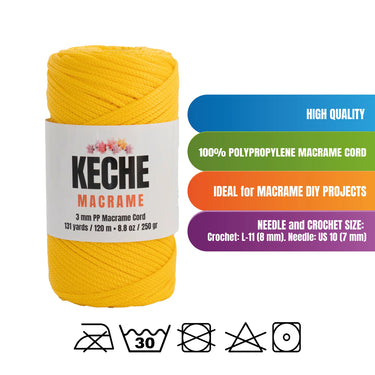 Keche Macrame Cord | Macrame Supplies 3mm Polyester Macrame Rope - Yellow